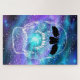 Skull puzzle, in the galaxy, planet earth. A black Skull surrounding the earth. Pillows Great home decor skull themes for bedroom or living room accent. Perfect gift for those that like skull art, space or planet earth art. Suitable for framing. You can customize your skull puzzle size and shape.