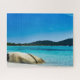 Este rompecabezas bastante difícil se caracteriza por el agua azul cristalina del mar esmeralda de Corse (Francia) con todos los tonos turquesa, rodeado de exfoliación mediterránea verde y una maravillosa playa de arena blanca con rocas pintorescas, en un soleado día de verano con un cielo azul claro.