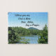 La pacífica escena montañosa y lacustre, con una breve cita: "Donde estás, Dios está ahí... Descansa, relájate, di una oración. G. Rouse"