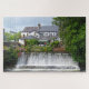 Casa con jardín con cascada frente al río Corrib, Galway, Irlanda.