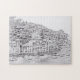Desafía tu rompecabezas haciendo habilidades con este boceto de lápiz de imagen en blanco y negro de Portofino, Italia.
