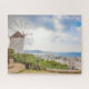 Este impresionante rompecabezas presenta el molino de viento tradicional en la isla griega de Mykonos en Grecia.