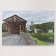 "Puente cubierto, Downsville, Nueva York" por Catherine Sherman. El histórico puente Downsville, Nueva York, lleva a la aldea de Downsville. Las casas se reflejan en las tranquilas aguas de la Rama Este del Río Delaware. Downsville Bridge es un puente cubierto de madera en la aldea de Downsville en el Condado de Delaware, Nueva York. Diseñado por el inmigrante escocés Robert Murray, el puente se construyó en 1854 y es un puente enmarcado de envergadura, madera y plan. El puente mide 53 metros de largo por 5,8 metros de ancho. El puente Downsville Bridge es actualmente el puente cubierto más largo del estado de Nueva York después de que el puente Blenheim de 71 metros (71 metros) en el condado de Schoharie fuera destruido durante la tormenta tropical Irene en 2011. El puente fue inscrito en el Registro Nacional de Lugares Históricos en 1999.