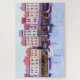 El puerto del barco con los veleros amarró a lo largo de una costa de tiendas y de cafés. Colores rojos, del azul y de la lavanda. Arte por REIFSNYDER©