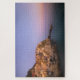 Rompecabezas de la foto del cielo púrpura en la puesta del sol sobre el pueblo precioso Manarola, empleado las rocas sobre el mar Mediterráneo en la costa del área de Cinque Terre en Liguria, Italia.