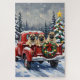 Bring wrinkly, cheerful charm to your holiday season with this adorable Pug Christmas design! This festive scene features three charming and lovable Pugs sitting contentedly in the back of a classic red pickup truck, nestled in a picturesque snowy winter forest. The vintage truck is adorned with a vibrant Christmas wreath, twinkling with red and gold ornaments and warm, glowing lights. Soft snowflakes gently fall, enhancing the winter wonderland effect. A decorated Christmas tree in the background completes this heartwarming picture, making it an ideal Christmas gift for any Pug owner, dog lover, or admirer of festive and comical dog art. This design perfectly captures the joyful spirit of the holidays.