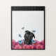 Puzzle Pug Negro Con Mariposas Azules Y Gerberas