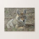 Rompecabezas de Coyote Acostado. Un joven coyote se relaja después de una mañana persiguiendo ratones en las praderas de hierba corta del sur de Alberta.