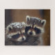 Puzzle Raccoons de bebé se apiñan en la nieve en caída