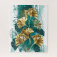 Rama con joyas, oro y hojas verdes de Ginko biloba en luz, fondo verde pintado. Ginko biloba