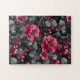 Puzzle Raspberry, flores borgoñas en gris oscuro