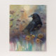 Puzzle Raven pintado a mano con flores silvestres