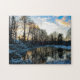 Las casas nevadas al fondo y las ramas cubiertas de blanco le dan a esta fotografía una atmósfera acogedora y nostálgica, ideal para disfrutar mientras armás cada pieza. Una invitación a detener el tiempo y contemplar la calma del invierno.