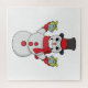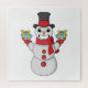Un lindo muñeco de nieve con regalos en sus manos para hacer tu invierno más feliz.