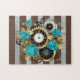 Puzzle Reloj de vapor y Rosas turquesa a rayas