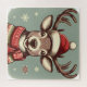 Ce design montre un renne coquet avec un chapeau de Noël et une écharpe bicolore. Le renne a de grandes cornes et un sourire malicieux. Le fond est décoré de flocons de neige. Ce design vintage est idéal pour célébrer l’hiver et la magie de Noël.