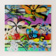 composición de fondo abstracto con flores, con trazos, salpicaduras y líneas geométricas. Colorido, moderno y artístico con un toque vintage. ¡Exprese su creatividad con este colorido fondo abstracto con flores! abstracto, pintura, flor, patrón, graffiti, floral, decoración, ilustracion, fondo, vintage, pared, papel, textura, marco, grunge, verde, violeta, salpicado, creativo, arcoiris