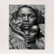 Este diseño gráfico es un impresionante ejemplo de arte blanco y negro, y presenta a dos jóvenes afroamericanas con un ojo azul cada una, creando un sorprendente contraste. El diseño gráfico es trippy y psicodélico, con patrones modernos muy complejos y de medio siglo, lo que lo hace apto para diversos productos. Este diseño gráfico captará tu atención y cautivará tu mente.