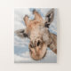 Un rompecabezas con una imagen retrato de una jirafa linda. Este rompecabezas es totalmente personalizable. Puede agregar un mensaje o cualquier texto o puede cambiar el tamaño y la cantidad de piezas del rompecabezas para establecer el nivel de dificultad como prefiera.