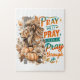 Diseño pacífico y colorido con una escena otoño/otoño con majestuosa cabeza de león, calabazas y flores caídas. El colorido texto inspirador dice: "Reza, reza por él, reza por él". Este diseño está disponible en una amplia variedad de productos.