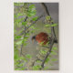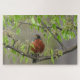Puzzle Robin estadounidense encaramado en una rama con fl