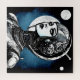 + ART de IA + mujer cibernauta retro en el espacio exterior + azul y blanco +