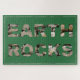 Una pared de piedra proporciona el texto "ROCAS DE LA TIERRA" con un fondo verde "terrenal". Acentuado con un delgado borde rocoso.