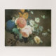 Puzzle Rosas, Ranunculus y otras flores en una malla azul