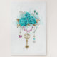 Llave de oro antiguo con rosas turquesa de moda decorados con hojas de oro blanco y cuentas rosas y azules. Color de moda. Rosas turquesas. Oro blanco. Tifanía azul.