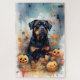 Puzzle Rottweiler de Halloween con calabazas aterradoras