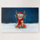 Perro duro de Collie en la nieve con sombrero de Santa y regalos de Navidades es una idea de regalo perfecta para Navidades para alguien que ama esta raza de perro.