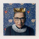 Ruth Bader Ginsburg lleva una corona con fondo vintage de tapiz de Medway. Esta obra de arte está inspirada en la icónica Ruth, quien abrió un camino para las mujeres en la jurisprudencia estadounidense.