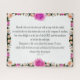 Salmo 1:1-3. en las fronteras de las flores coloridas. Bendito es el que no se anda con los malvados ni se interpone en la manera en que los pecadores toman o se sientan en compañía de los burlones, pero cuyo deleite está en la ley del SEÑOR, y que medita en su Día de la Ley y en su noche. Esa persona es como un árbol plantado por arroyos de agua, que arroja su fruto en temporada y cuya hoja no se marchita, lo que sea que haga prospera.