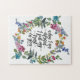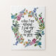 El rompecabezas de jigsaw de las escrituras inspiradoras representa una cortina de color bonito con flores y vegetación azul pradera silvestre, rosa y naranja. Presenta el Salmo de la Biblia Verse 56:3, "Cuando tengo miedo, deposito mi confianza en ti." *