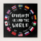Alegre tema de viajes mundiales con saludos en diferentes idiomas con banderas de los países. Perfecto para viajeros, amantes del lenguaje y amantes de la cultura que disfrutan de la diversidad internacional.