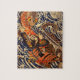 Puzzle Samurái luchando contra un reptil grande, alrededo