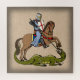 Aunque a menudo retratado como un caballero medieval, San Jorge era un tribuno militar de fines del siglo III y principios del siglo IV (mártir alrededor de 303). Según la leyenda, George mató heroicamente a un dragón que había estado aterrorizando el campo alrededor de Silena en Libia. Esta representación particular del santo guerrero de Richard H. Fay lo representa armado como un caballero medieval del siglo XIII.