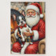 Puzzle Santa Claus Holding Boston Terrier Christmas Art