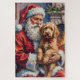 Puzzle Santa Claus Holding Goldendoodle Christmas Art