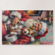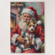 Puzzle Santa Claus Holding Wirefox Terrier Christmas Art