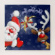 "¡Ho Ho Ho Ho Ho Ho Ho! ¡Los navidades están aquí! ¡Feliz Navidad a todos!" Feliz y lindo Papá Noel con el pulgar arriba, celebrando a los Navidades con su Buda, el gracioso reno - personajes de caricatura. Diseño exclusivo © BluedarkArt.