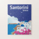 Características del este diseño una escena costera de la ciudad de Santorini, Grecia.