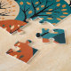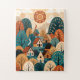 Immerse yourself in the cozy charm of this Scandinavian folk art village. This whimsical illustration features a rolling landscape of patterned hills, quaint cottages, and stylized autumn trees, all warming under a decorative sun. Rich with earthy tones of terracotta, teal, and gold, this intricate design captures the magic of a fairytale harvest season. Perfect for lovers of Nordic design, cottagecore aesthetics, and unique abstract landscapes. A delightful choice for puzzles, wall art, or cozy home textiles.