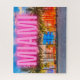 El hermoso y colorido rompecabezas cuenta con vistas fotográficas de edificios frente al mar de Miami iluminados por neones con palmeras, cielos nublados azules y un gran superpuesto de texto MIAMI de neón rosa