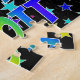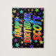 Este emocionante y animado diseño de rompecabezas con temática de cumpleaños presenta el mensaje "FELIZ CUMPLEAÑOS, SCOTT" con los personajes con un colorido patrón de gradiente inspirado en el espectro de arcoiris, junto con un vibrante patrón de fondo de estrellas. Un rompecabezas vibrante como este podría ser usado para enviar saludos de cumpleaños a alguien llamado Scott. [~Z0000468]