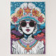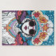 Este rompecabezas presenta un colorido ilustracion vectorial de un martillero icónico femenino con un atuendo de moda, gorra adornado con flores, ropa vintage, gafas de sol rosas y pintalabios rojos. Este es un gran y desafiante rompecabezas para los rompecabezas expertos en moda.