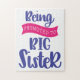 El diseño dice: Ser ascendido a hermana mayor. Perfecto para invitaciones de recién nacido, revela la hermana mayor, celebración de hermanas mayores.