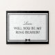 Convierta el papel de su pequeña en su boda en algo memorable con este rompecabezas personalizado "¿Será usted mi portador de anillo?". Con un diseño elegante en blanco y negro con un elegante ilustracion de borde y corbata de arco, este encantador rompecabezas es una manera única de hacerle llegar la pregunta a su portador de anillo. Personalizar con su nombre por un toque personal que apreciará, y que disfrute juntando la sorpresa. ¡Perfecto para un conservador especial o para una revelación divertida en una reunión familiar!
