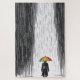 A lone figure stands beneath a radiant rainbow umbrella while black rain pours relentlessly from the sky. The rain represents pressure, negativity, fear, and the weight of the modern world. The umbrella—vivid, colorful, and defiant—becomes a shield of inner strength, identity, and hope.