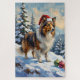 This beautiful digital painting captures the intelligence and grace of the Shetland Sheepdog, seen wearing a classic Santa hat while gently herding glittering Christmas ornaments across a snowy, pastoral hillside. A charming and unique holiday design for Sheltie owners.